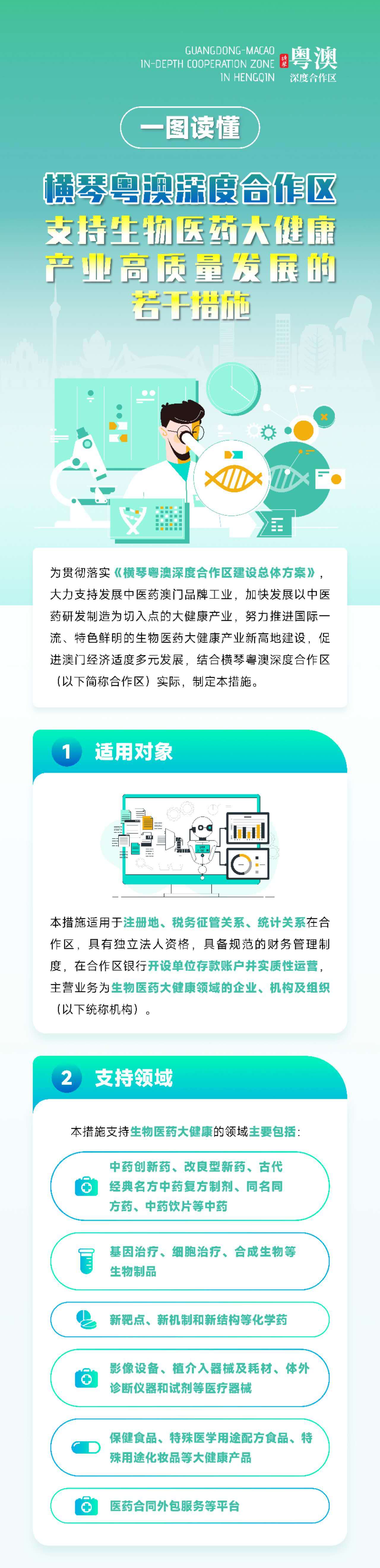一图读懂 | 横琴合作区首个支持生物医药大健康产业发展的专项政策