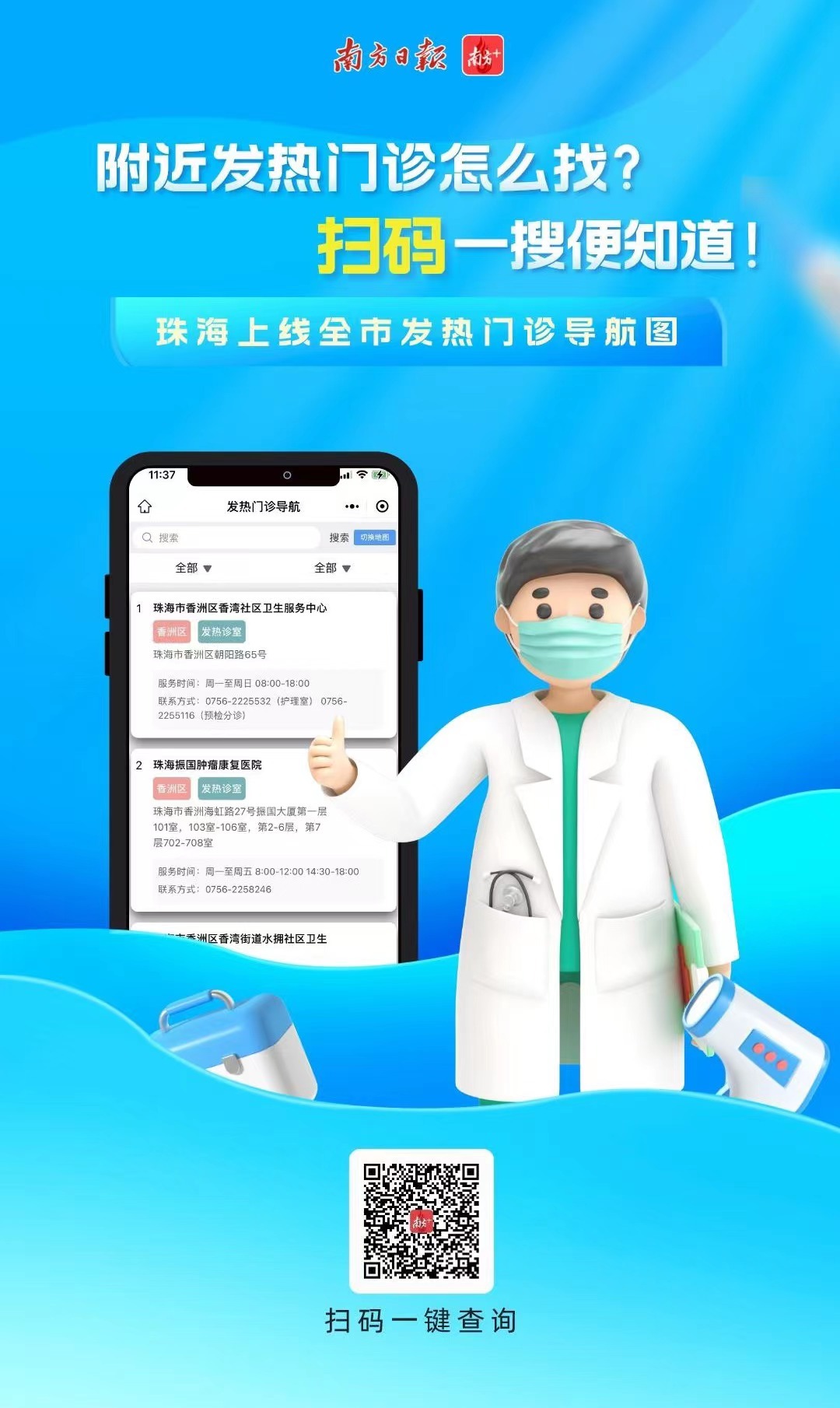 如何方便快捷查找自己附近的发热门诊?12月23日,珠海上线“发热门诊导航图”,市民通过手机就可一键查询。依托“珠海市发热诊室导航图”,市民可用最快速度一键查询“点对点”直达的发热诊室,最大限度降低交叉感染风险。