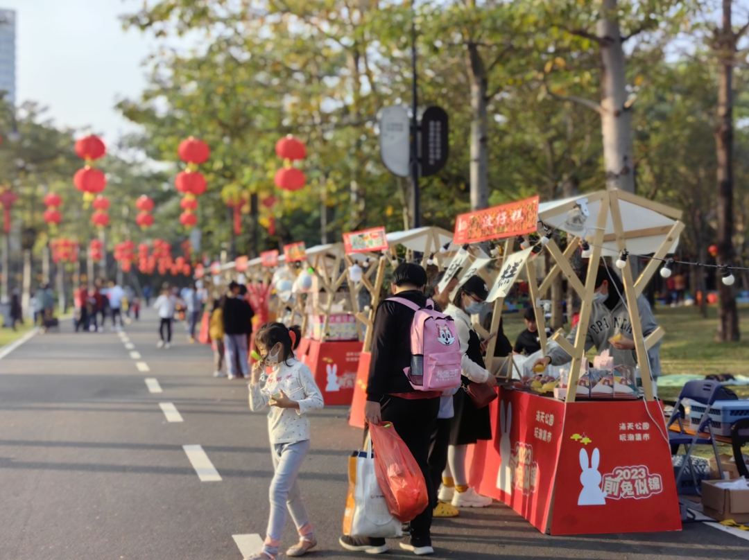 1月13日海韵城新春嘉年华暨第一届海岛花市开始举行,各种年花、零食、手工艺品、潮玩品等琳琅满目,过年氛围感100%拉满。除了花市之外,还有新春市集,涵盖了特色美食、文创产品、游戏互动等,满足市民逛花街、享娱乐、探美食等多方面的消费需求。同时,香洲区文化广电旅游体育局、香洲区文化馆联合举办“粤新年·兔添福·香洲范”香洲非遗过大年活动,前山凤鸡舞、沙田民歌、古琴等多项非遗表演,让大家沉浸式感受年俗年味里的非遗。