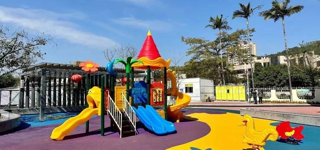 这个崭新的儿童乐园配备了滑梯、摇摇马、互动转椅转盘等儿童游乐设施,旁边还建设了小区中心公园,安装了新的运动健身器材,成为华丰园居民休闲娱乐的一方惬意天地。