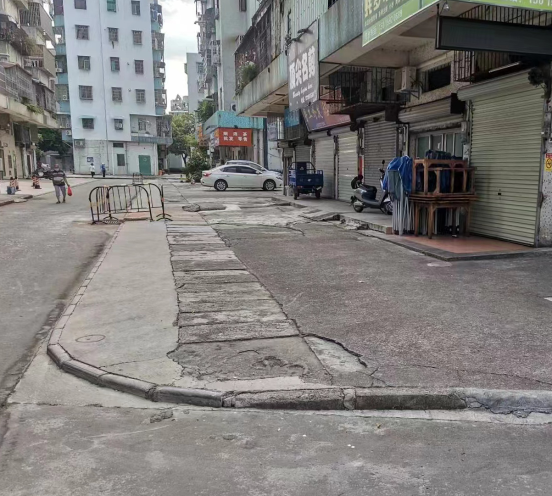 由于建设年代久远,使用时间长,美平村很多车行道和人行道的混凝土路面出现老旧破损、凹凸不平。加之近年来随着经济发展,平沙镇机动车数量不断增多,美平村作为老旧小区,缺乏规范划设的停车位,导致停车难、停车乱问题日益突出。