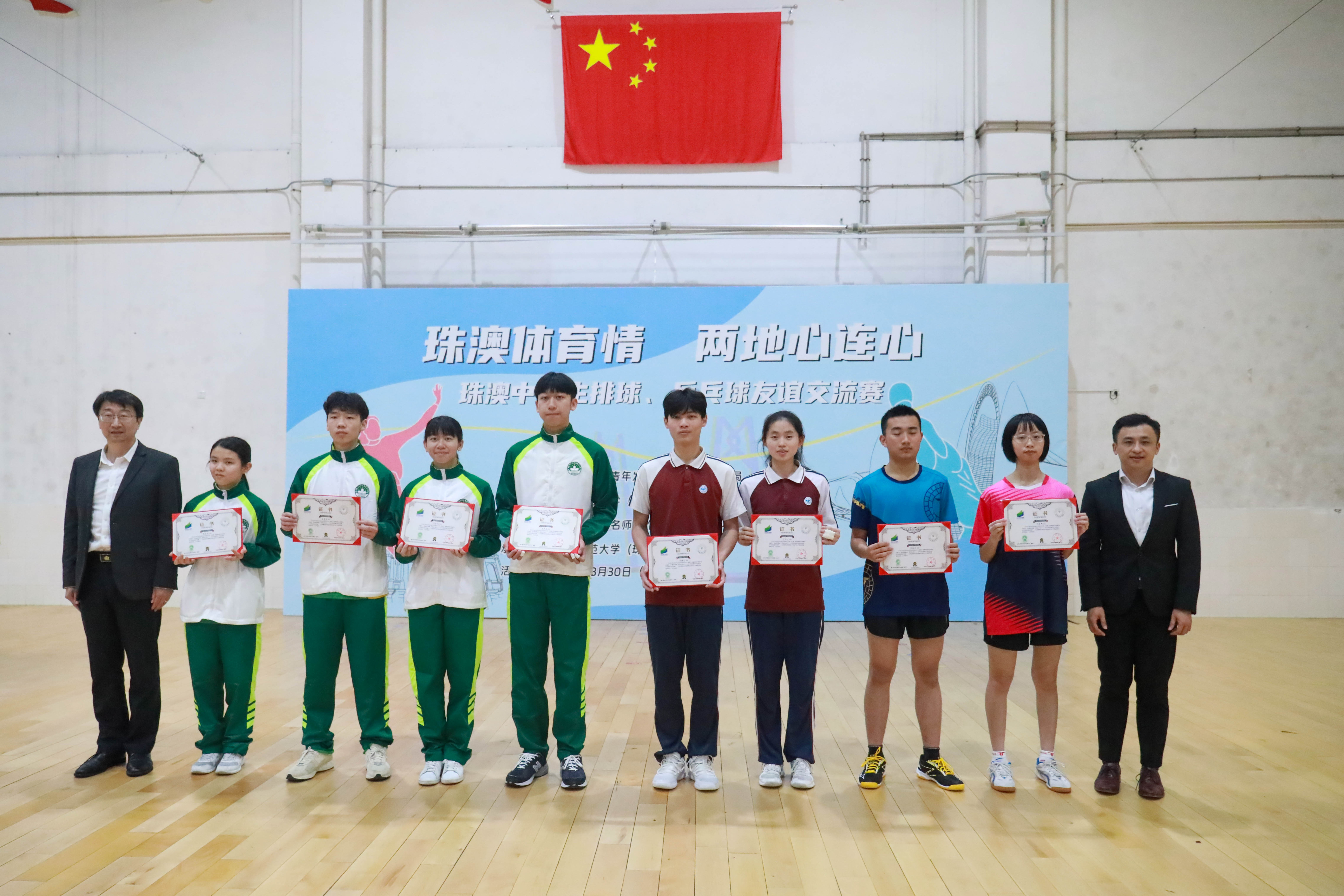 经激烈比拼后,当天男排、女排两项比赛由珠海队取胜,男乒、女乒两项比赛则由澳门队夺冠。