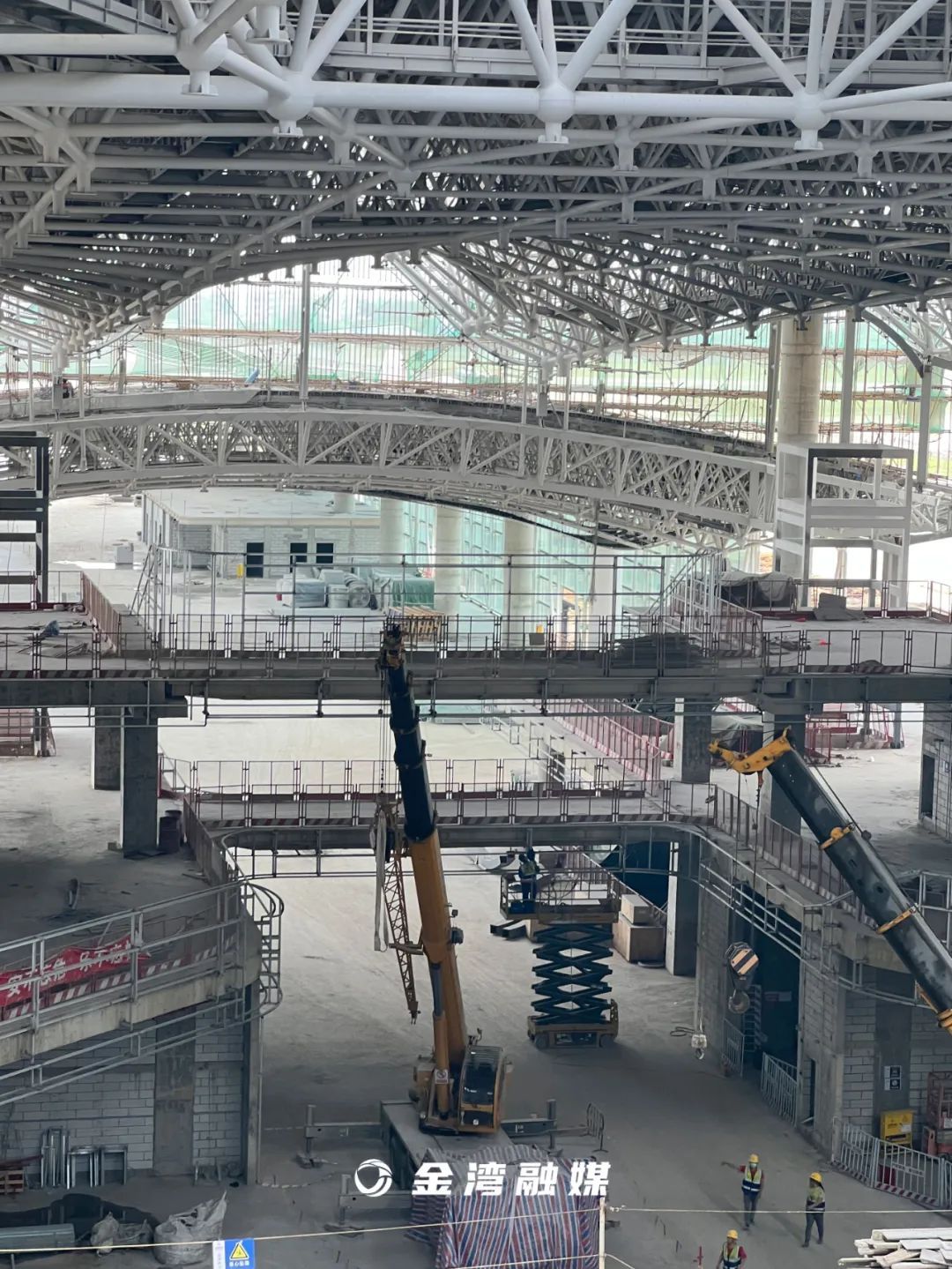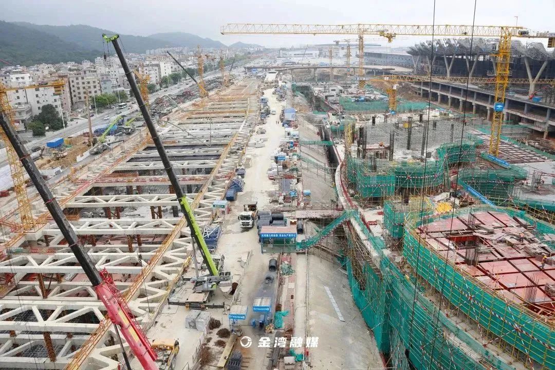 目前,珠海机场综合交通枢纽项目一期工程主体结构预计5月底完成砼结构封顶,8月份完成屋顶网架提升,10月份完成屋面施工,地面交通中心(GTC)部分预计明年与T2航站楼同步完工。