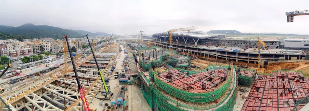 ▲珠海机场综合交通枢纽项目一期工程主体结构封顶在即