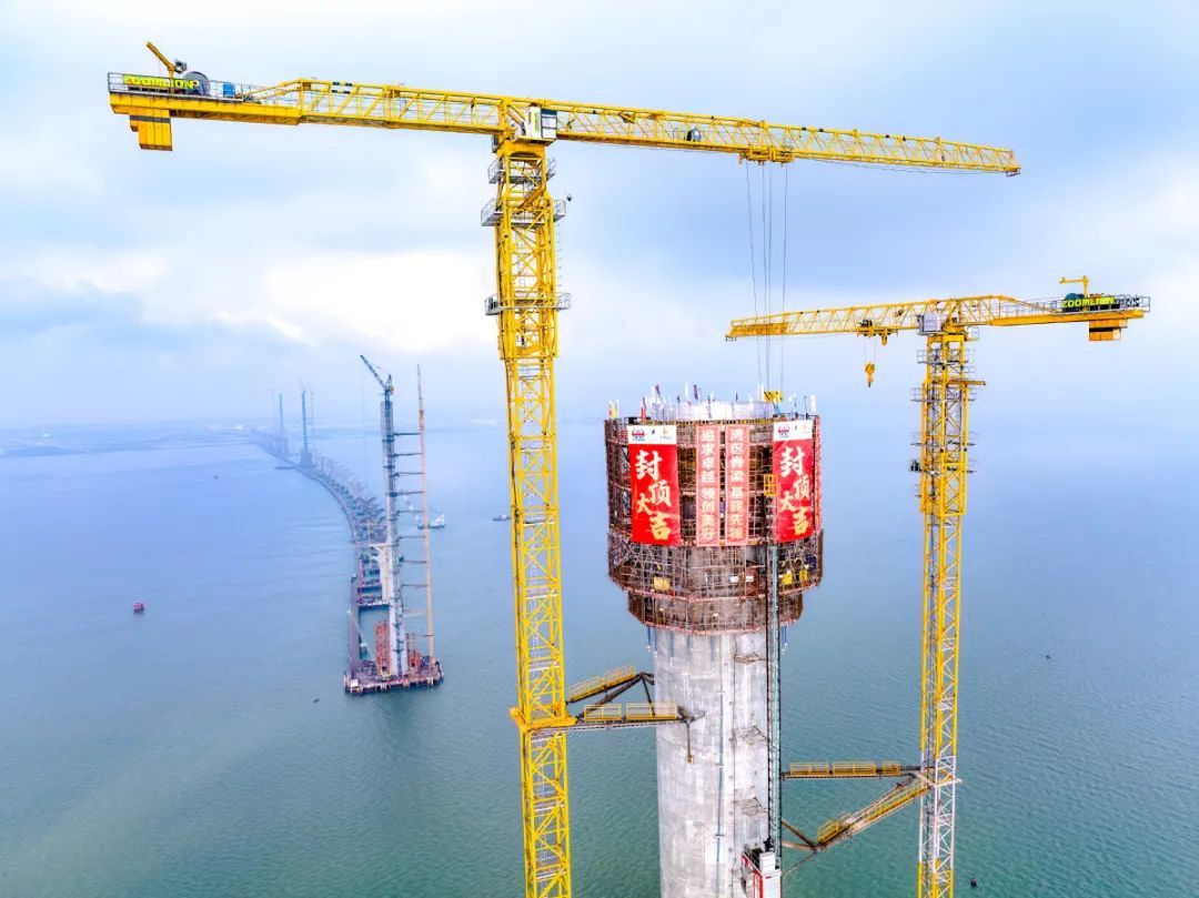 ▲黄茅海大桥中塔封顶现场