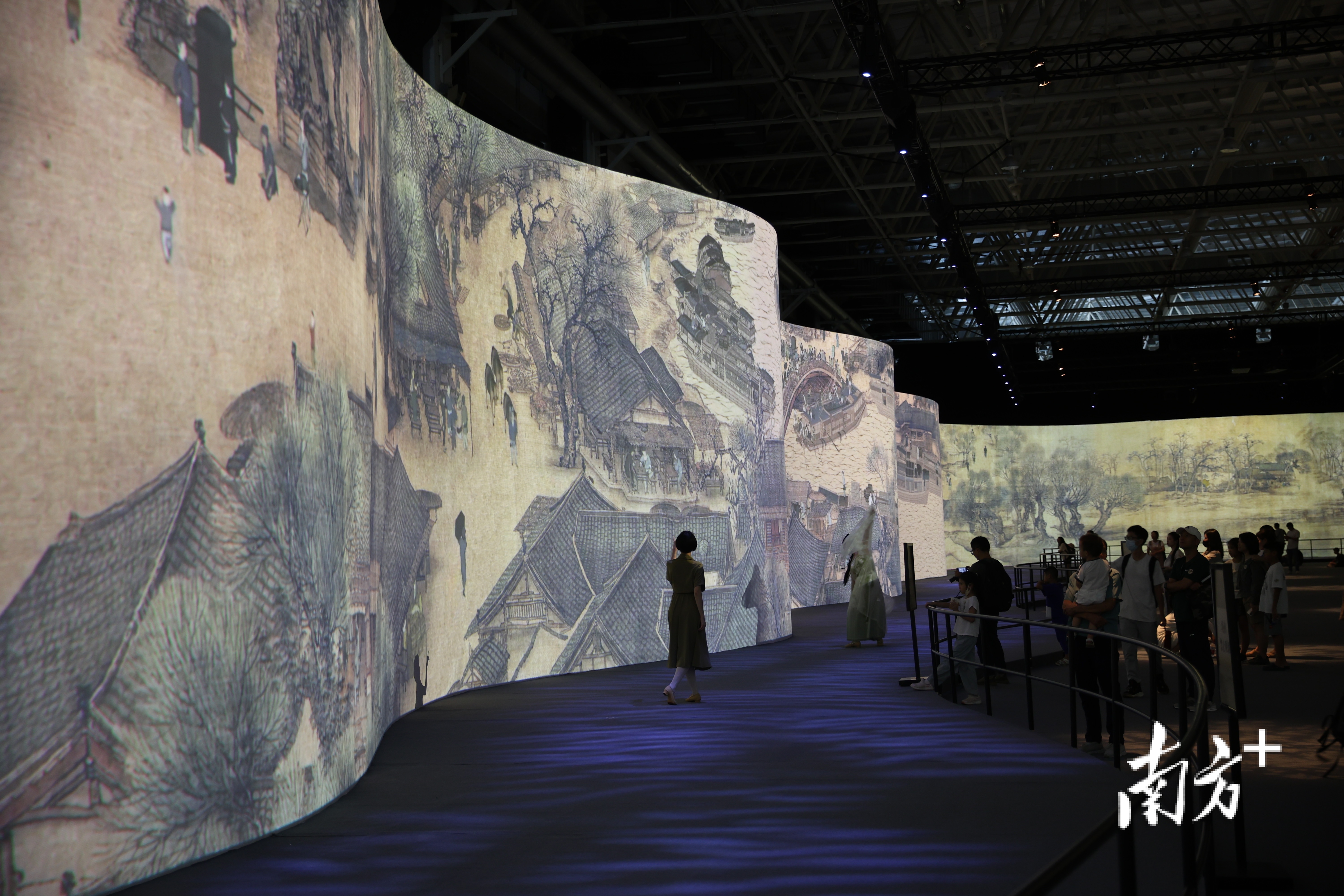 会动的《清明上河图》珠海站项目负责人刘贤政在现场导览时介绍,动态版《清明上河图》是水晶石公司以北宋画家张择端的《清明上河图》为蓝本进行开发创作的数字艺术作品。“制作团队使用现代科技手段,将原作放大了数百倍,并在长128米,高6.8米的巨幅画卷中生动重现出了北宋都城汴京的众生百态,承载了丰厚的人文内涵和美学价值。”