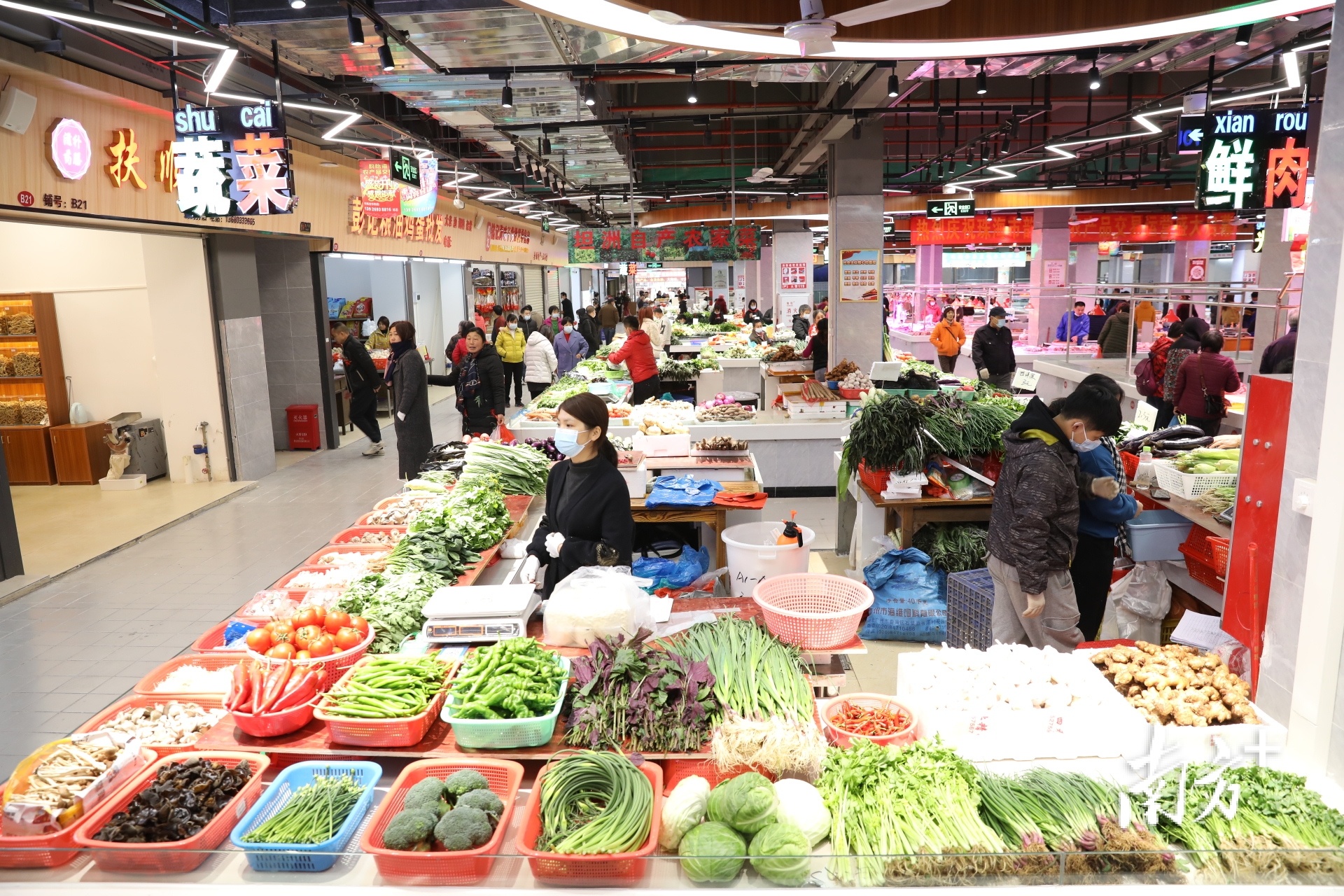 走进珠海市南坑市场,每个摊位都设置了绿色围挡,货品分门别类、整齐划一地摆放,改造后的市场外墙焕然一新。