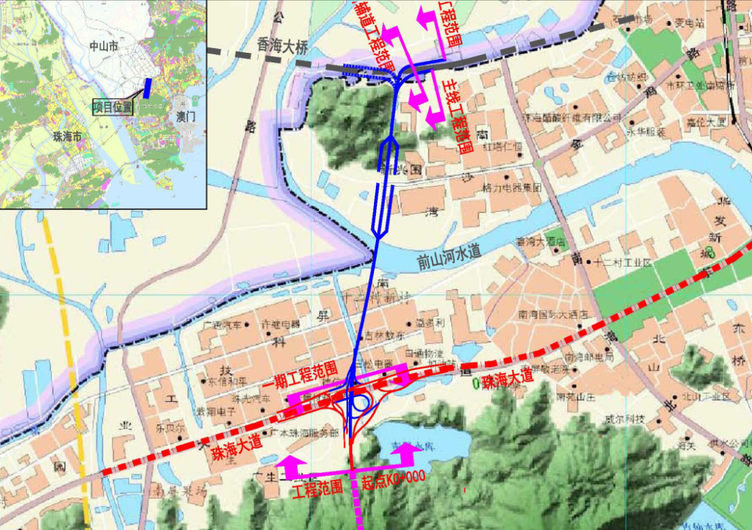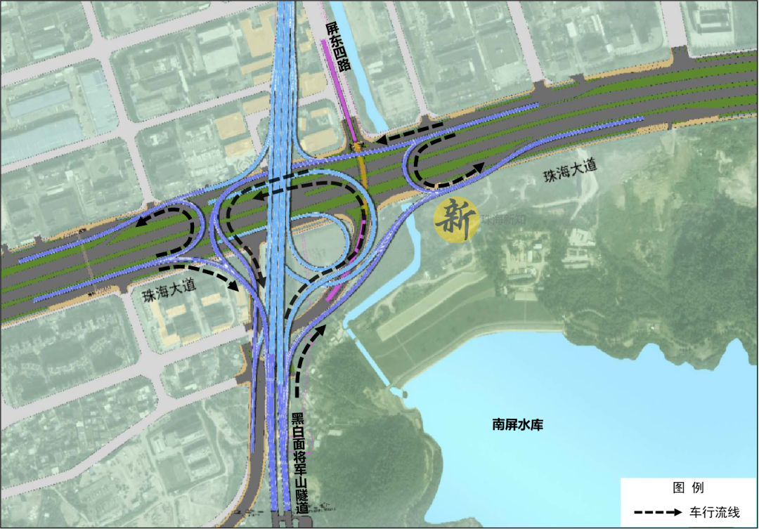 据了解,黑白面将军山隧道至香海大桥新建工程(一期)由大横琴城市新中心发展有限公司代建。该公司有关负责人介绍,根据规划,黑白面将军山隧道至香海大桥新建工程项目分两期建设,其中工程(一期)将在珠海大道南屏水库段(屏东四路下穿隧道位置)新建一座互通立交,并计划同步在珠海大道建设东西两侧高架调头匝道,不仅有效缓解目前屏东四路下穿通道的交通压力,而且车辆在驶入南屏段珠海大道往西区方向时,无需再行驶到南屏立交或者珠海大桥桥底处调头。