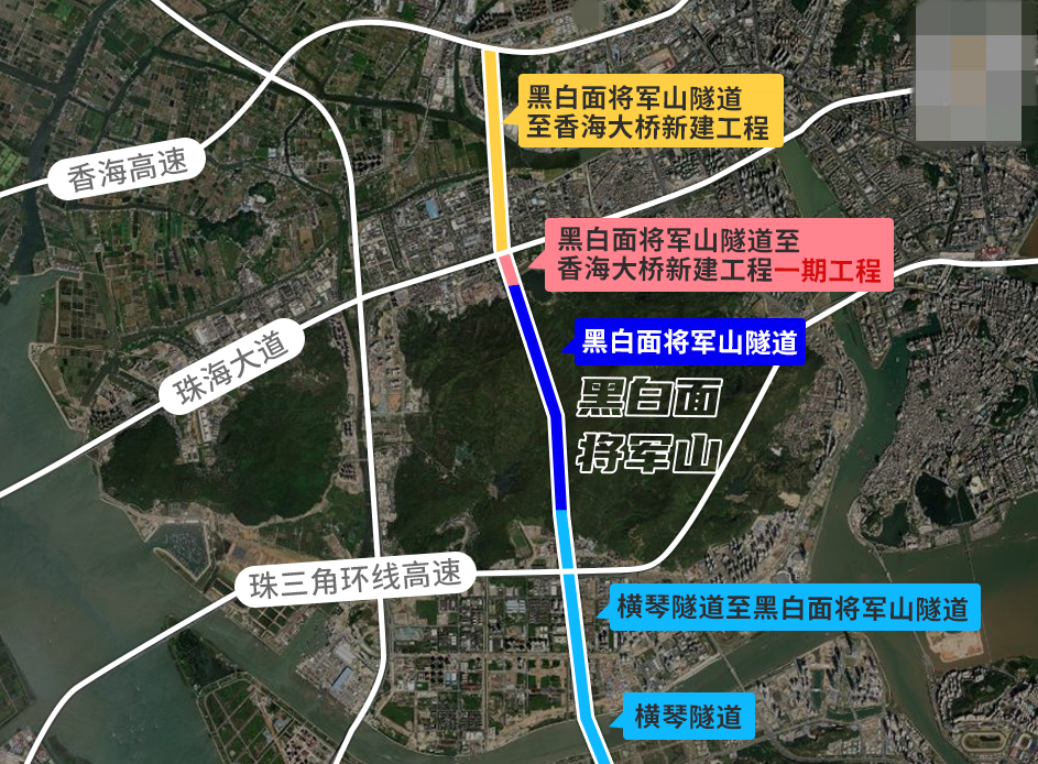其中,横琴隧道至黑白面将军山隧道新建工程已经正式动工,黑白面将军山隧道新建工程已于2022年7月全面贯通,黑白面将军山隧道至香海大桥新建工程(一期)开始清场。