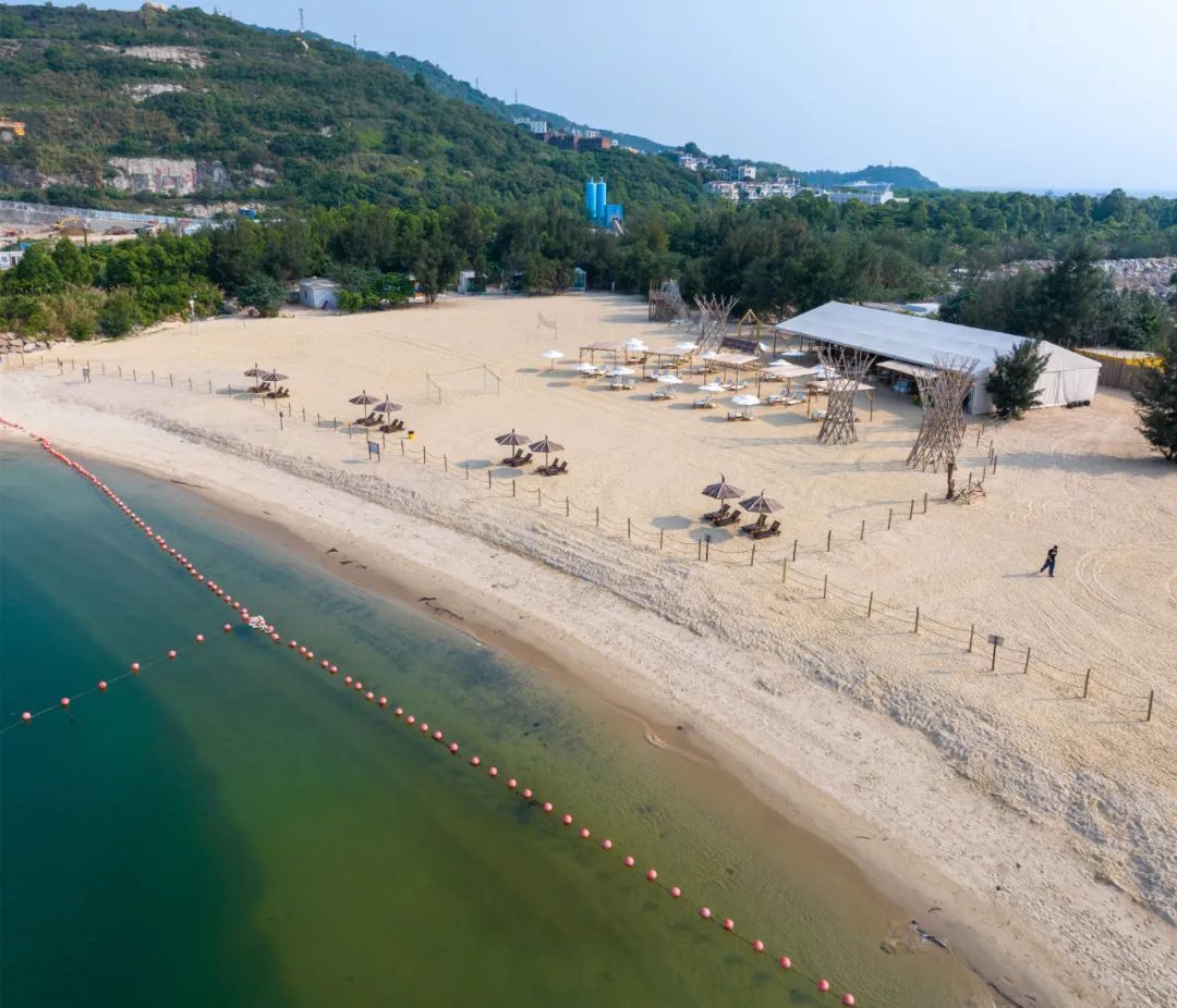 👉桂山岛海豚湾沙滩修复工程修复沙滩海岸线约791米、沙滩面积3.2万平方米,吹填沙约22万立方米,为居民和游客提供了优质的滨海旅游休闲空间,有效促进海岛旅游开发与生态建设协调发展。