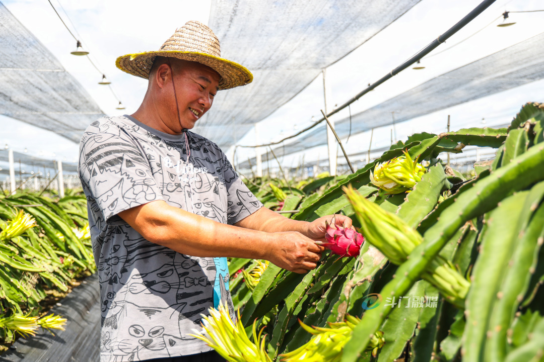 味甜多汁的火龙果吸引了不少游客前来采摘,品尝果肉的香甜,体验采摘的乐趣。