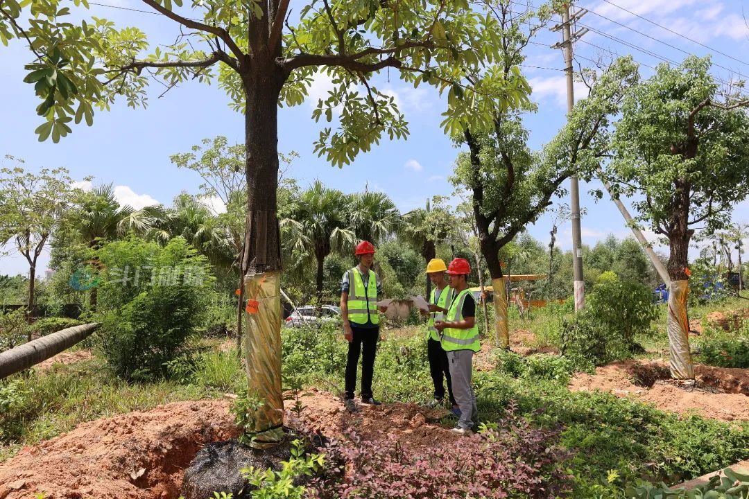 8月15日,笔者在县道X582斗门大道至旭日陶瓷厂段看到,施工方正在对改造路段的绿化树进行迁移。
