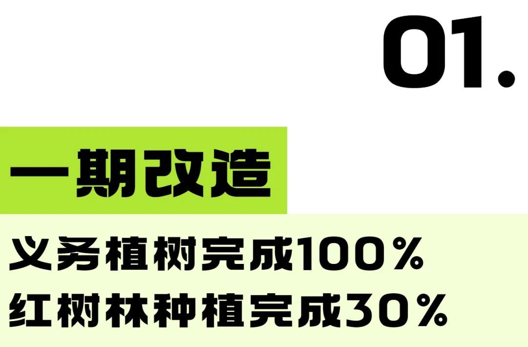 一期改造提升主要集中在公园对外开放的区域及长堤两侧,主要包括义务植树、红树林种植、林业科普、自然教育、环境整治、基础服务配套设施提升6项内容。