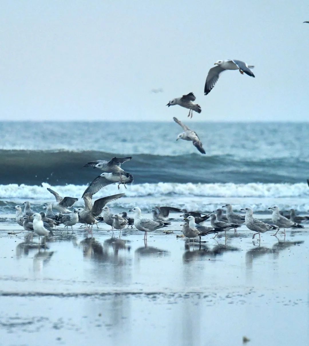 每年的冬季到春季,成群结队的海鸥就会北迁到金湾。