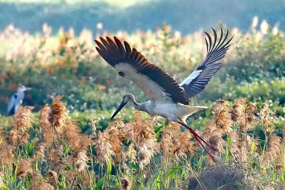 数十只“鸟中国宝”东方白鹳在平沙沿岸湿地过冬。