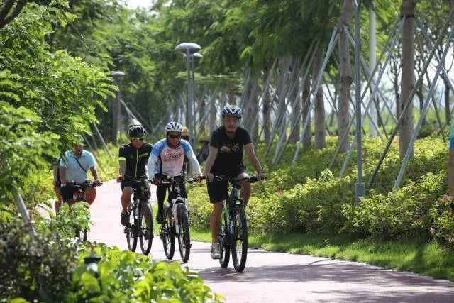 中心河湿地公园,骑行爱好者在林间绿道惬意穿行。