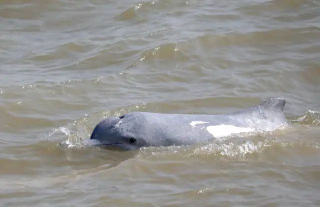 被誉为“海上精灵”的中华白海豚在金湾近海游弋。