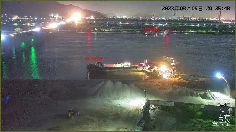 这个系统前端采用的是新一代800万像素网络高清智能摄像机,不仅昼夜图像效果清晰,还可以追踪拍摄,将画面实时传输至监控平台。系统通过人工智能算法,能识别出画面区域内是否存在违规施工、偷倒渣土、机动船只违法作业等行为,还可以监控工业烟尘与水面漂浮物。