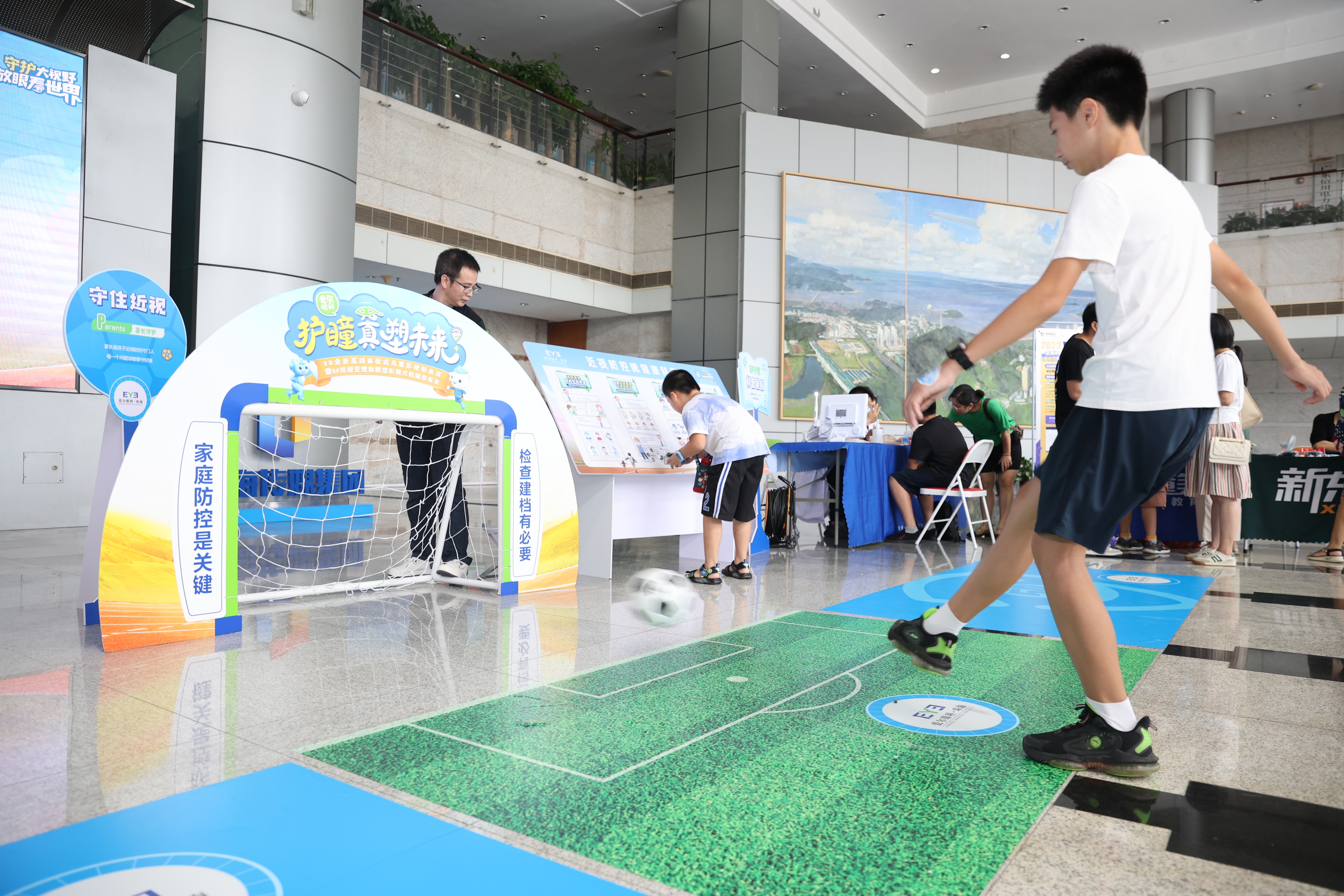 暑假即将结束,孩子们享受着暑假的欢乐时光,却很容易忽略暑期用眼健康。为让孩子及家长们认识到近视防控的重要性,做好准备迎接开学,珠海爱尔眼科医院于8月20日下午,在这个暑假的末尾,联合传媒集团全息儿童剧场及珠海诺贝尔口腔、童程童美少儿编程(珠海校区)、珠海新东方教育培训中心,举办了一场别开生面的大型眼健康科普活动。活动当日吸引200余名家长和孩子到场参与,通过寓教于乐的方式,科普儿童青少年正确用眼习惯和提高科学用眼意识,帮助家长和孩子们学习护眼知识。