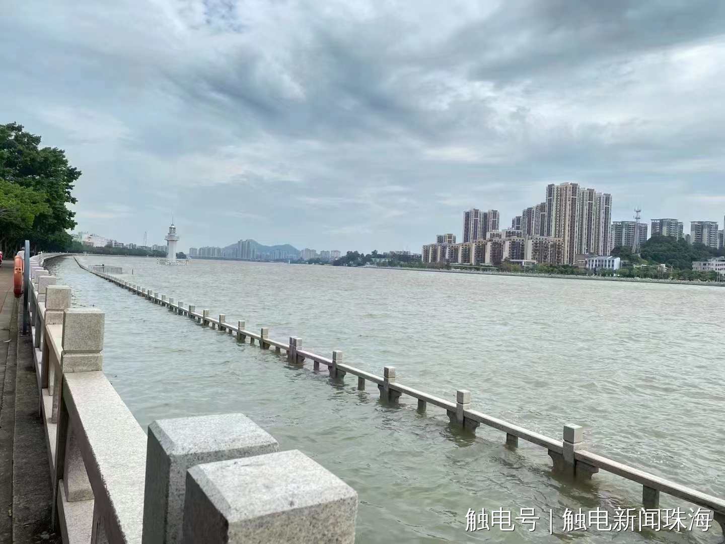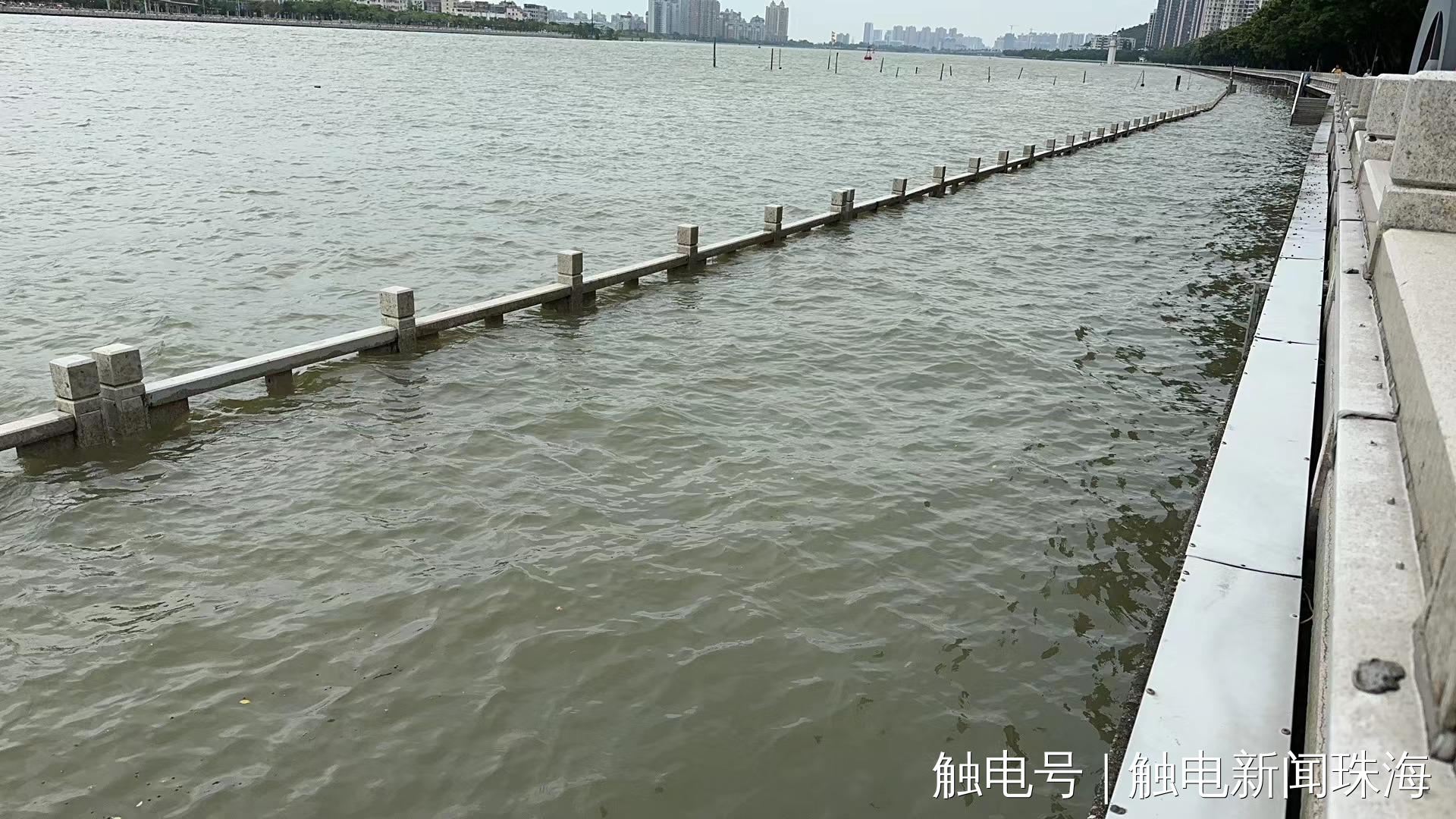 受天文大潮影响,珠海斗门区黄杨河段水位上涨,部分亲水平台淹没。呼吁市民切勿靠近河沿岸,做好防护措施。