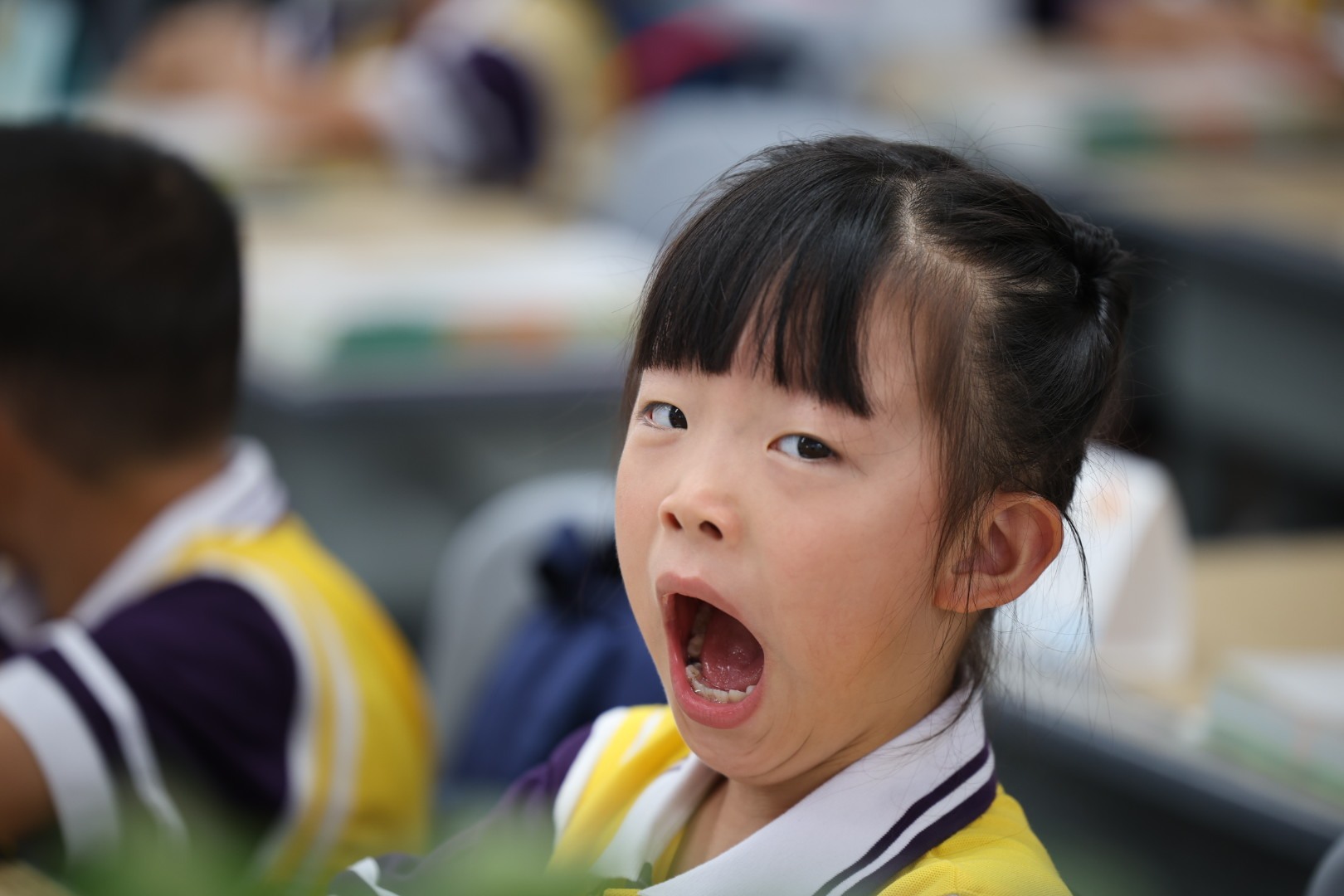 还适应不了早起,打个大大的哈欠。 南方+ 关铭荣 拍摄