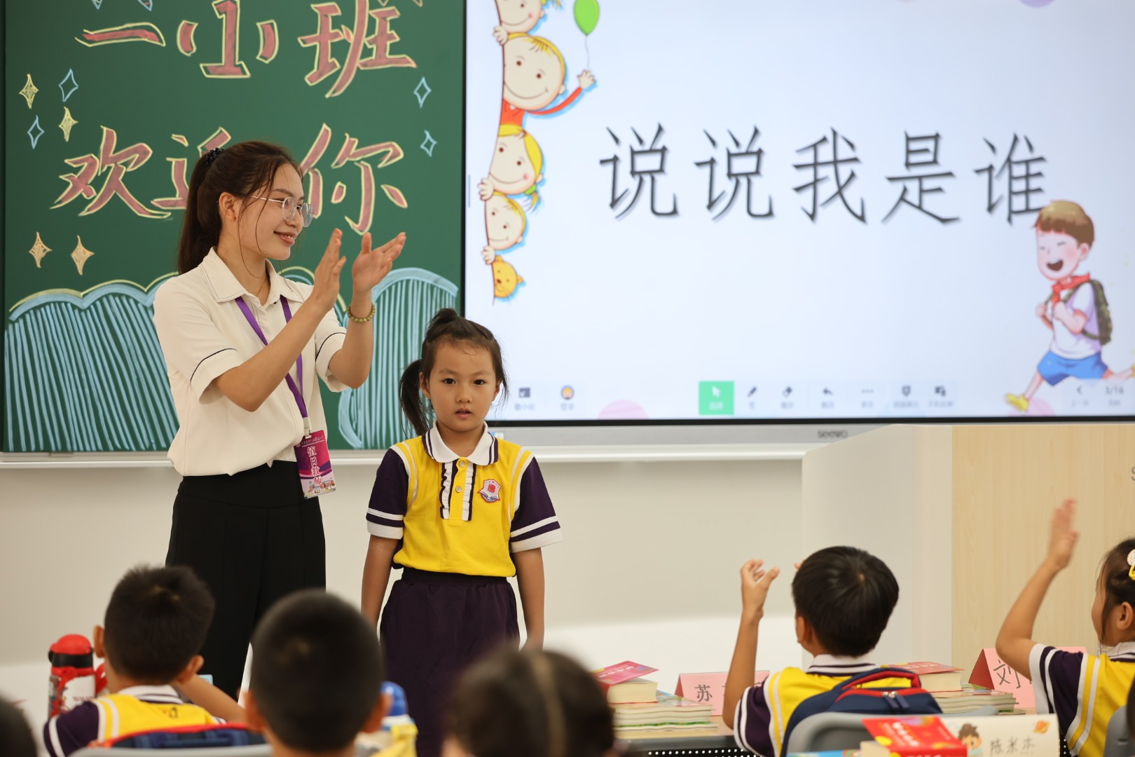 在老师和同学的鼓励下,第一次走上讲台自我介绍。 南方+ 关铭荣 拍摄