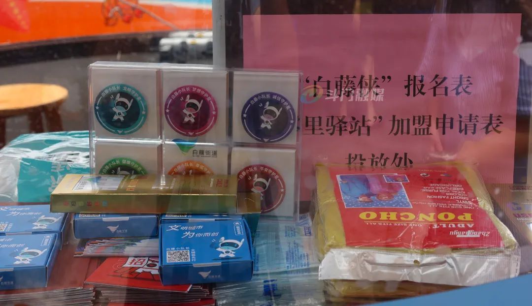笔者探秘发现,该零里驿站正是白藤首个在市场打造的四星级加盟驿站,将为消费者免费提供充电、热水供应、休憩小坐、应急药品等13项服务。目前设有便民雨伞、基础医疗药物等,供市民免费使用;白藤侠、零里驿站加盟等宣传,更是抢眼。