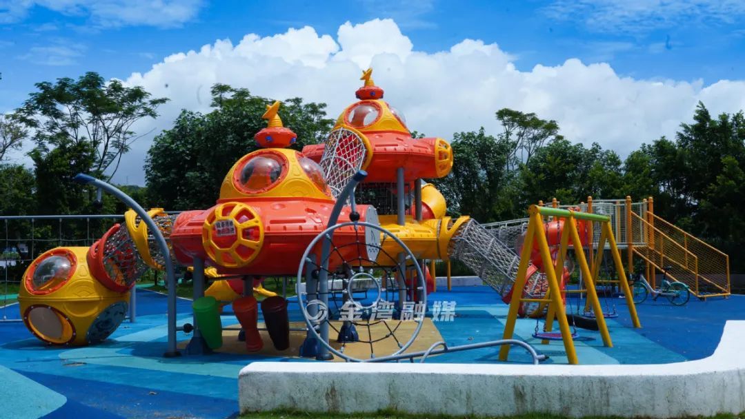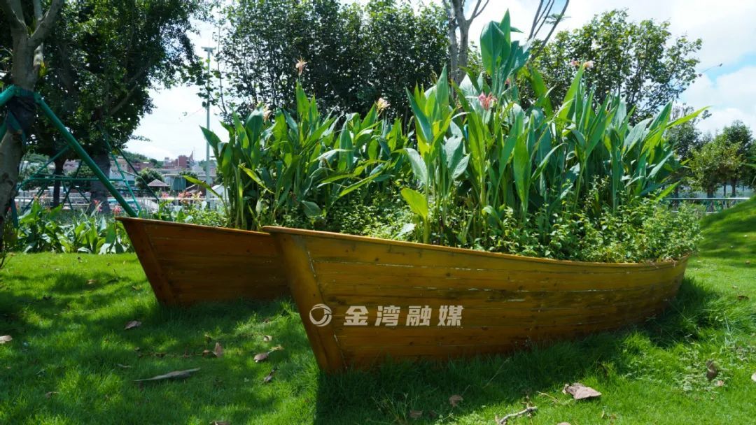 同时,公园里还建有船型花圃、铁锚雕塑、儿童游乐场、月亮秋千等极具特色的设施,既可供群众观赏游玩,亦可满足儿童嬉戏、亲子游乐的需求。