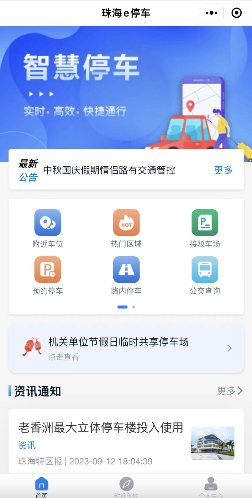 市民游客可通过“珠海e停车”微信小程序,及时查询当前周边最近的停车场。9月28日,记者查询看到,在该小程序首页显著位置设有“机关单位节假日临时共享停车场”一栏,点击进入即可按距离最近、余位最多等排序方式显示对外开放的党政机关、企事业单位停车场信息。
