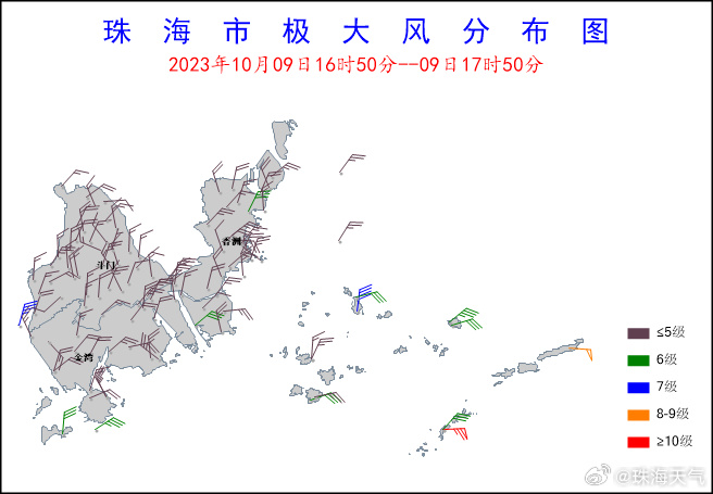 受台风影响,珠海市气象台于10月9日12时0分发布珠海市台风蓝色预警信号,请注意做好抗风防雨措施。
