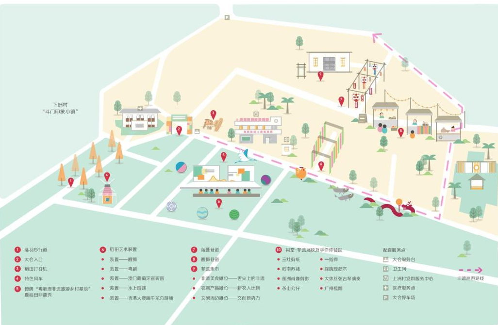 本次大会活动现场将带来一系列精彩纷呈的展演活动,其中包括非遗巡游及稻田非遗秀,届时,极具岭南特色的莲洲地色、飘色、七月三十装路香(舞火龙)、锣鼓柜、醒狮等盛大巡游队伍将陆续通过全村主干道,与现场市民来一次超近距离的非遗接触!