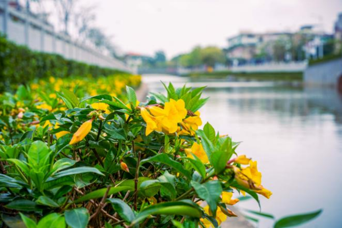 鸡山排洪渠碧道坚持系统治理理念,围绕保障水安全、梳理水动脉、修复水生态、建设水景观、丰富水旅游等策略,融入周边河道、村居、公园、桥梁等元素,打造出鸡山排洪渠游憩活动主题长廊等景观,构建水清、河畅、岸绿、景美的滨河水岸线。