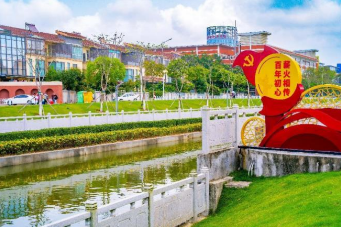 鸡山排洪渠碧道起于唐国安纪念学校桥,终于鸡山牌坊,是一条都市型碧道,已建成长度1.5km。