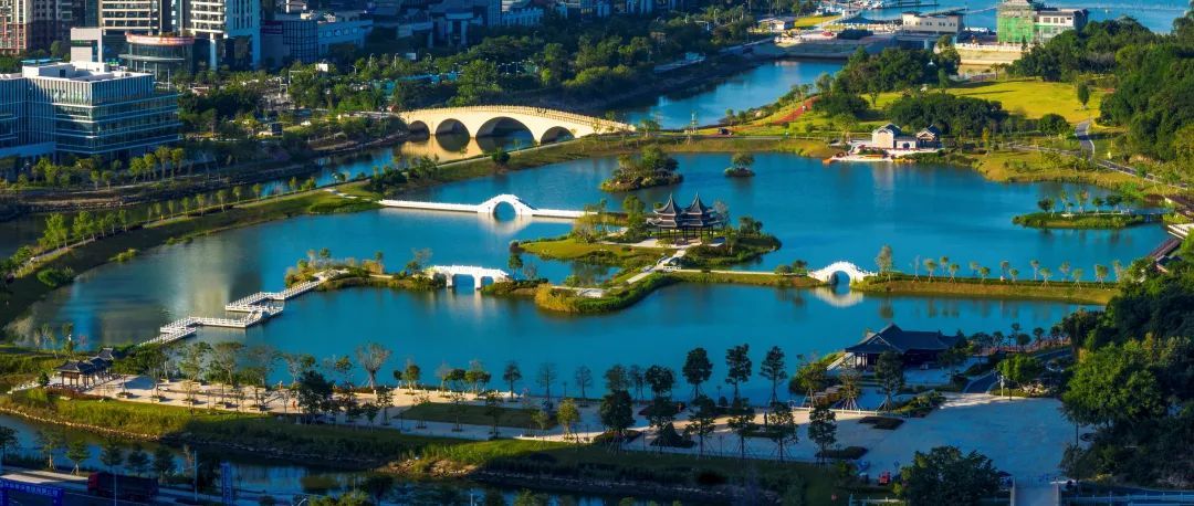 碧道串联起珠海中山公园,依山傍水,风景宜人。珠海中山公园以生态修复与保护为主,保留自然本底,突显生态景观,打造出“湖心一岛,玉带凌波”的滨水漫步系统,沿主游线布置亭台水榭,一步一景,步移景异,营造“水色天光、咫尺岭南”的自然生态美景。