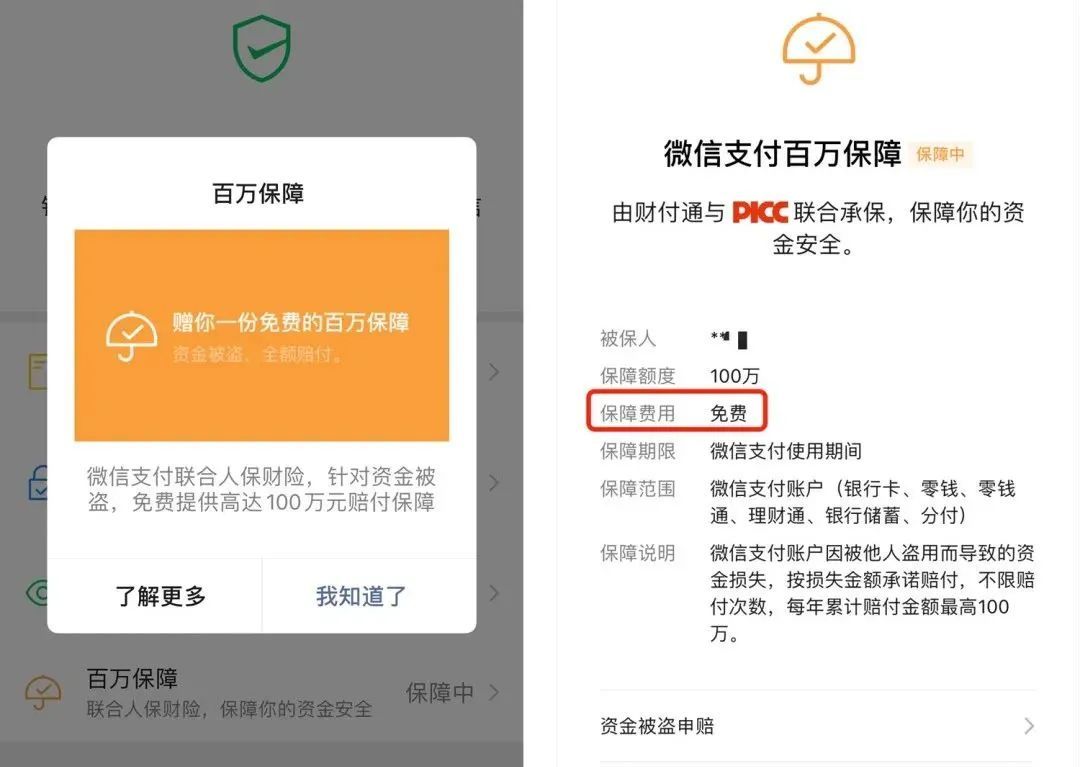 微信、支付宝“百万保障”均为自动开启的安全设置,完全免费且不会影响个人征信。