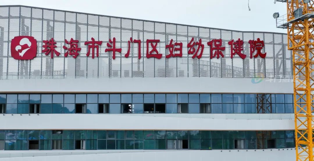 目光聚焦到白蕉东湖新城,斗门区妇幼保健院新院工程现场,塔机回转,建设正酣,主体结构幕墙安装火热进行中,顶部最新安装的院名和院徽引人瞩目。