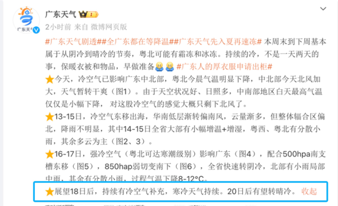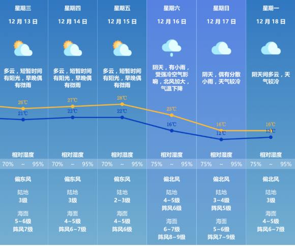 展望一股强冷空气将于周六白天起影响珠海,气温将明显下降;周末至下周初北风清劲,天气较冷。