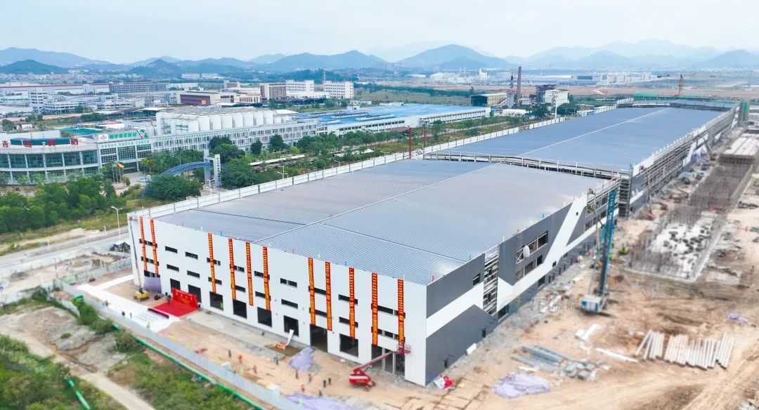 12月20日,富山海四达储能项目厂房封顶,2栋共计约500米超长厂房初具雏形。