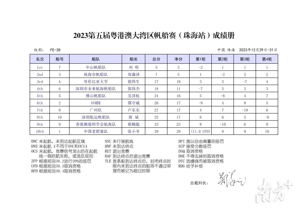 2023年12月31日,第五届粤港澳大湾区“九洲杯”帆船赛(珠海站)暨珠海万山群岛“九洲杯”帆船邀请赛、珠海市民健身运动会帆船友谊赛顺利落下帷幕。最终中山帆船队获得冠军,珠海市帆船队获得亚军,哥伦比亚大学队获得季军。