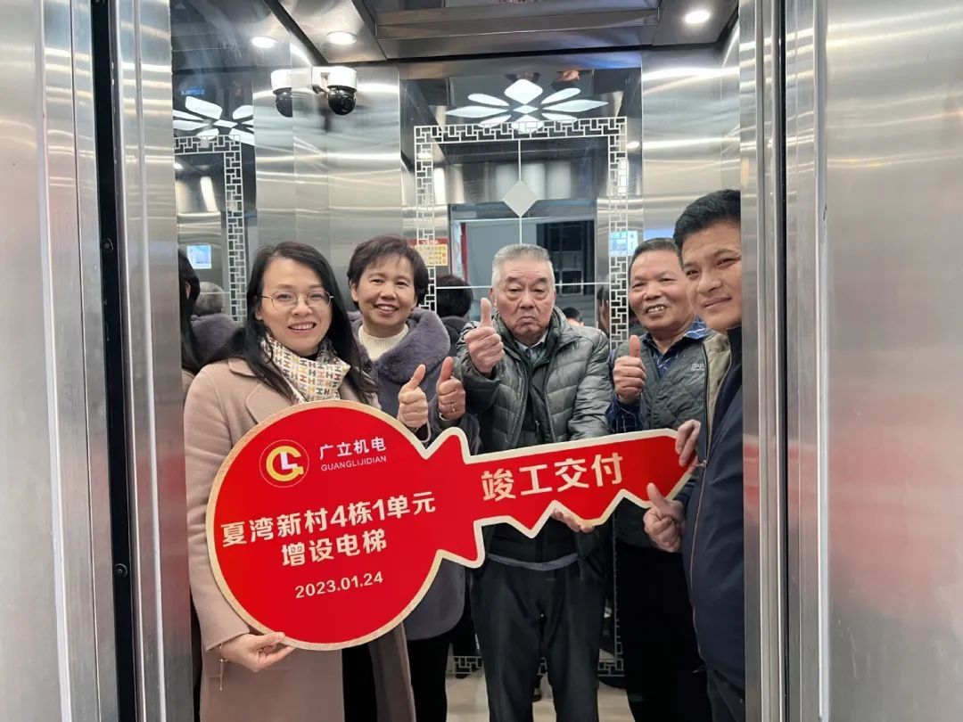 1月24日,一个简单而热烈的竣工仪式在夏湾新村4栋楼下举行,庆祝该楼栋居民们的“电梯梦”终于成真。崭新的大门、洁白的墙面、锃亮的扶手、整齐划一的门牌与线路、“一键”回家的电梯,让居民们的幸福感溢于言表,纷纷点赞。