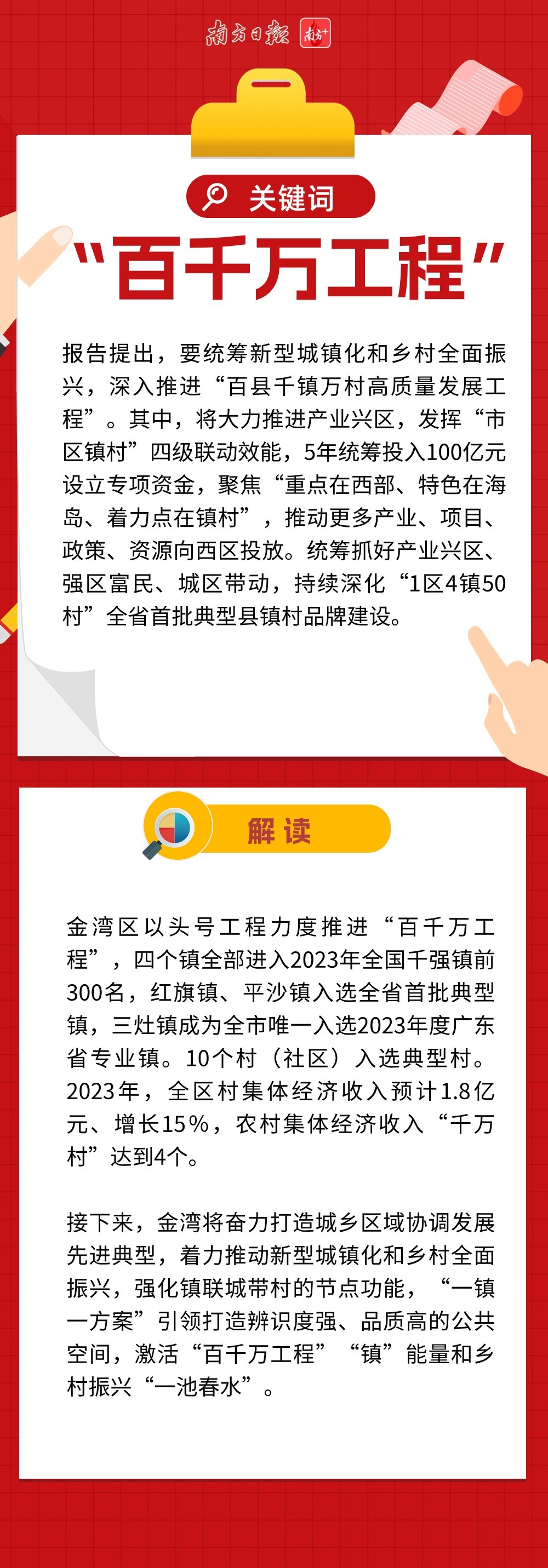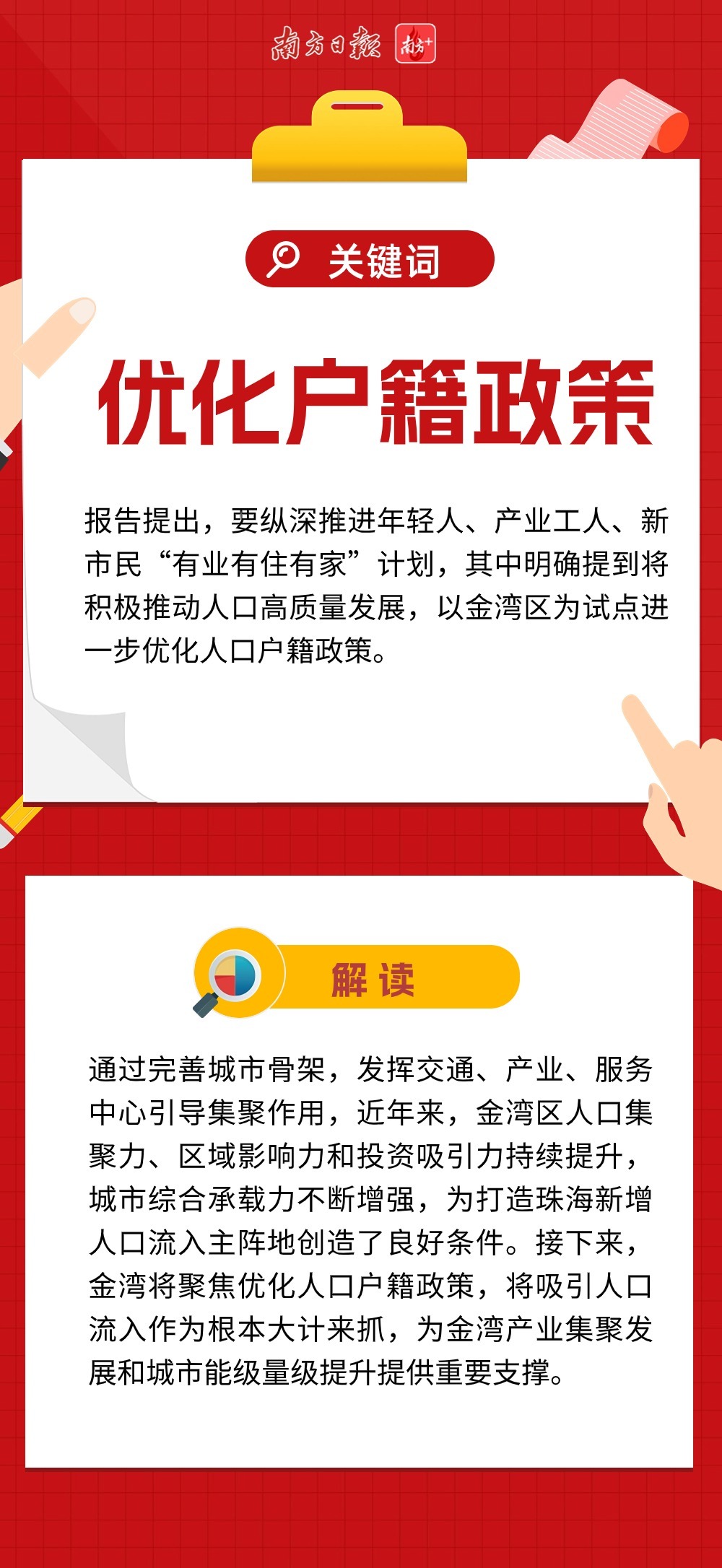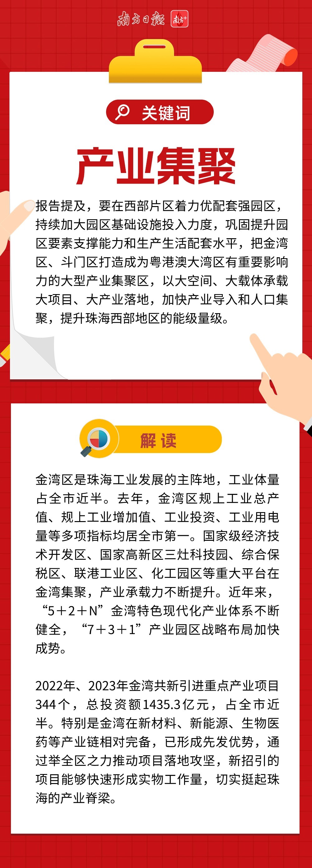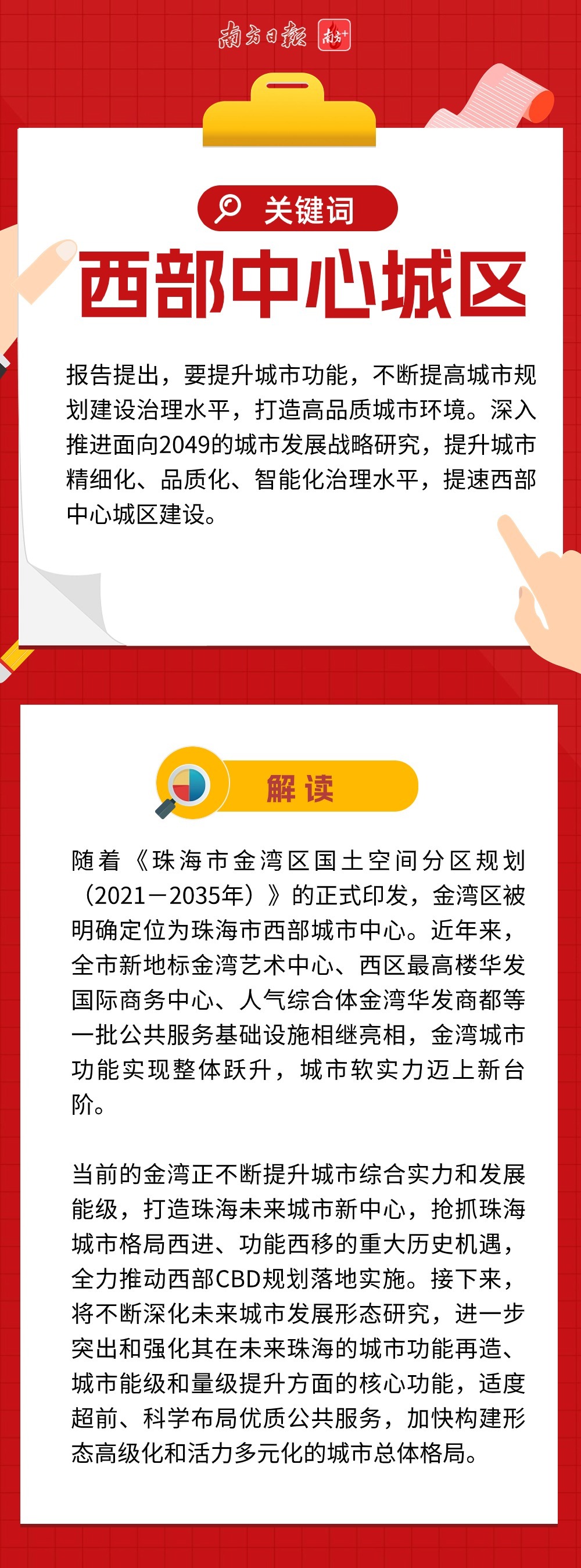 近两万字的报告,描绘珠海新一年发展的巨幅蓝图,金湾区也被赋予了更多期待。不仅在优化产业空间、试点户籍政策等方面被直接提及,还涉及多处与金湾区息息相关的工作部署。