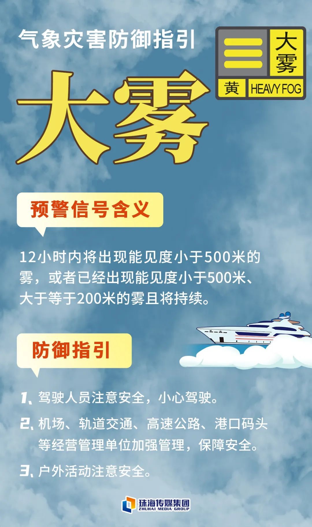 【大雾黄色预警信号防御提醒】