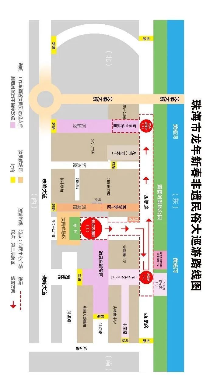 ▲珠海市龙年新春非遗民俗大巡游路线图。