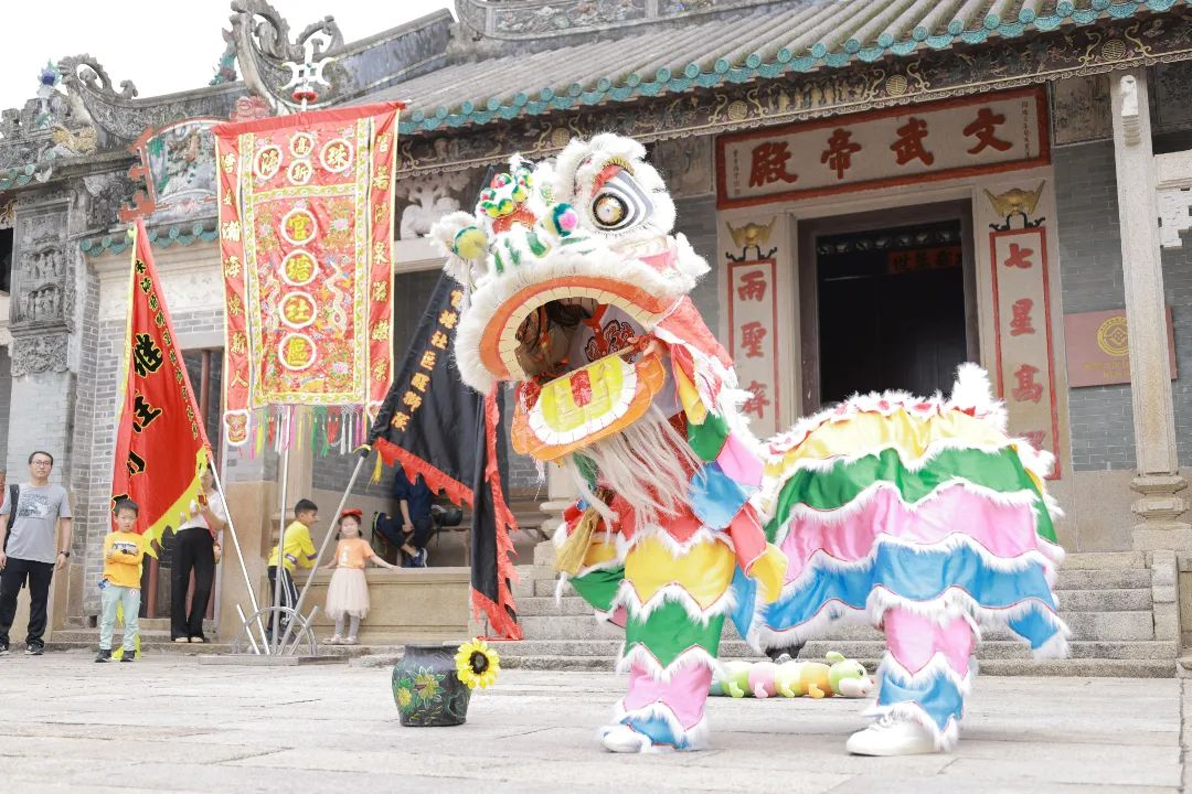 由龙狮、汉服、粤剧、文旅IP特色人偶等方阵组成的巡游队伍,从唐家村史馆出发到共乐园西南门,巡游沿途进行表演,与市民游客互动。