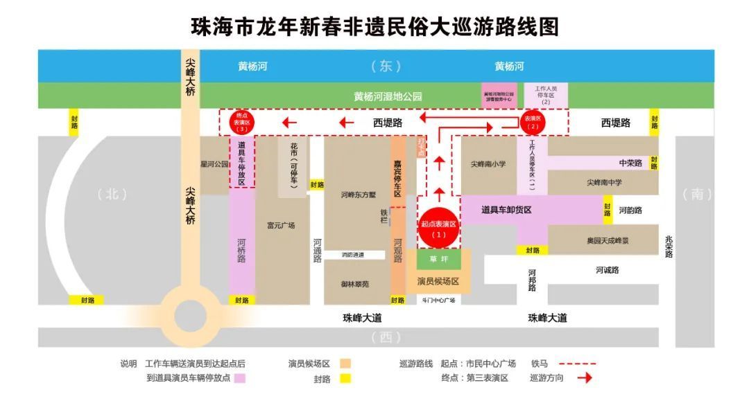 西堤路南延段(中心广场以东、Y字路口至兆荣路口段)、河邦路(河邦路口以东)中荣路、河韵路(奥园天成峰景小区门口以北)