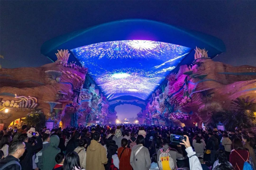 除了震撼人心的超级猛犸大巡游,还有海洋夜光大巡游、龙腾虎跃贺新岁等大型演出。晚上九点,在长隆海洋王国,新春版海洋幻彩烟花秀准时上演,点燃了园区的新春狂欢氛围。烟花汇演搭配无人机矩阵呈现“财神送宝”“金龙献瑞”和“浪漫流星雨”等绚烂画面,水上飞人大炫惊艳特技,给大家呈现了一场视觉盛宴。