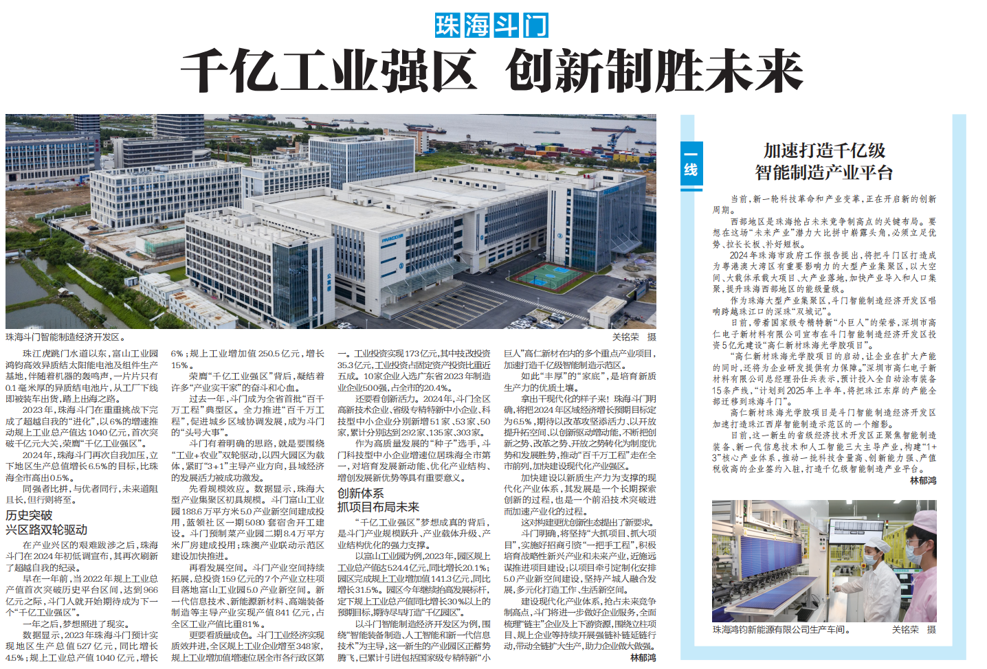 珠海斗门:千亿工业强区 创新制胜未来