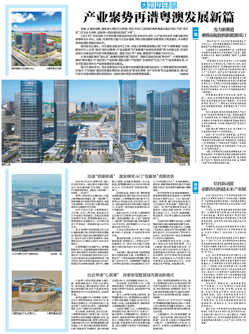 大横琴集团:产业聚势再谱粤澳发展新篇