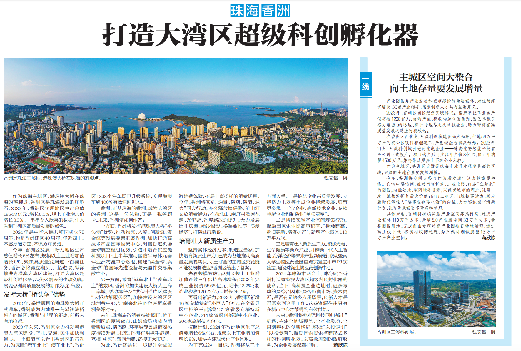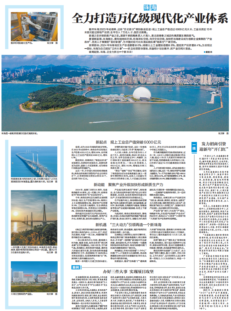 南方日报推出《高质量 挑大梁》特别报道,其中珠海高质量发展一线报告全面展现珠海高质量发展的新作为、新实践。