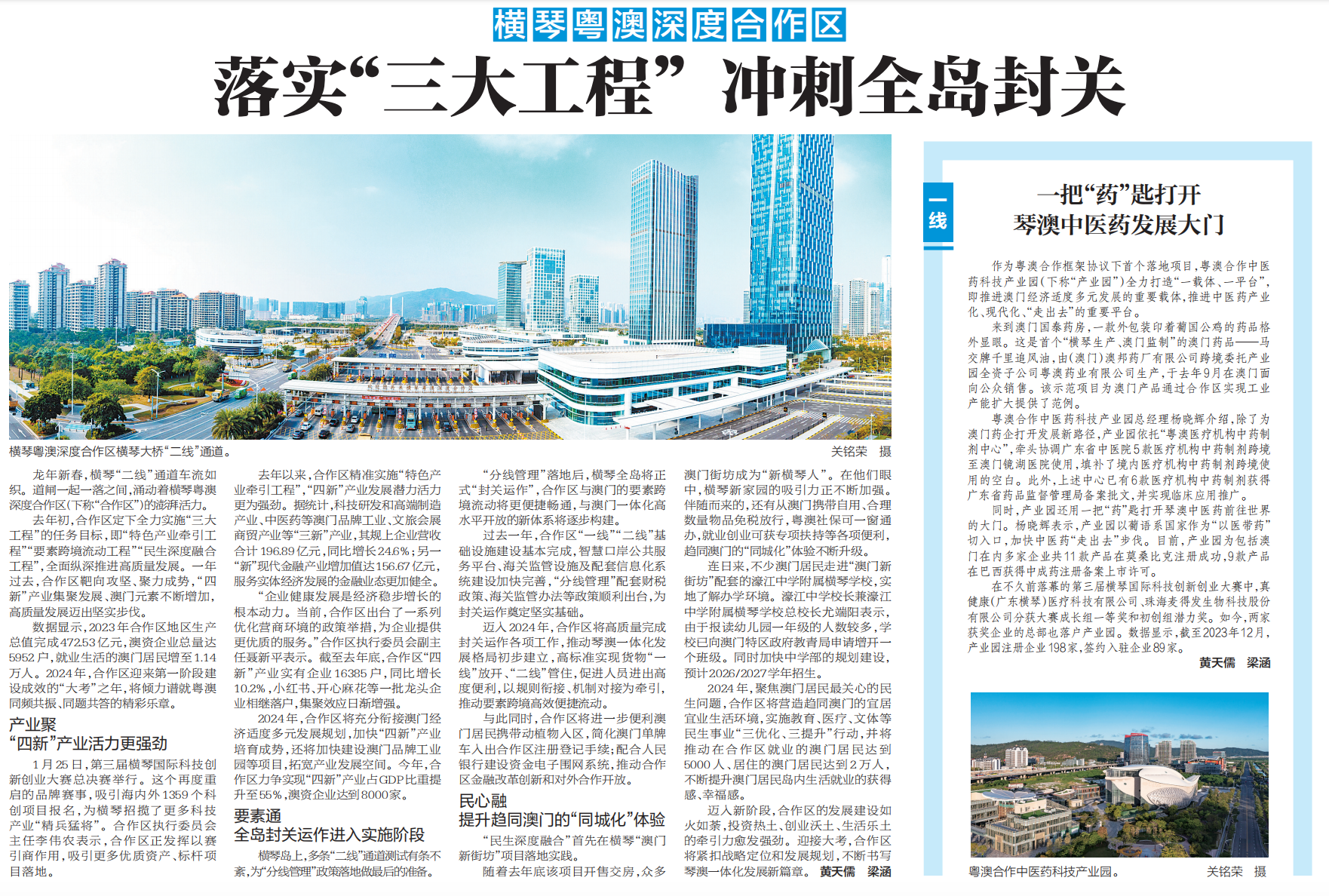 龙年新春,横琴“二线”通道车流如织。道闸一起一落之间,涌动着横琴粤澳深度合作区(下称“合作区”)的澎湃活力。